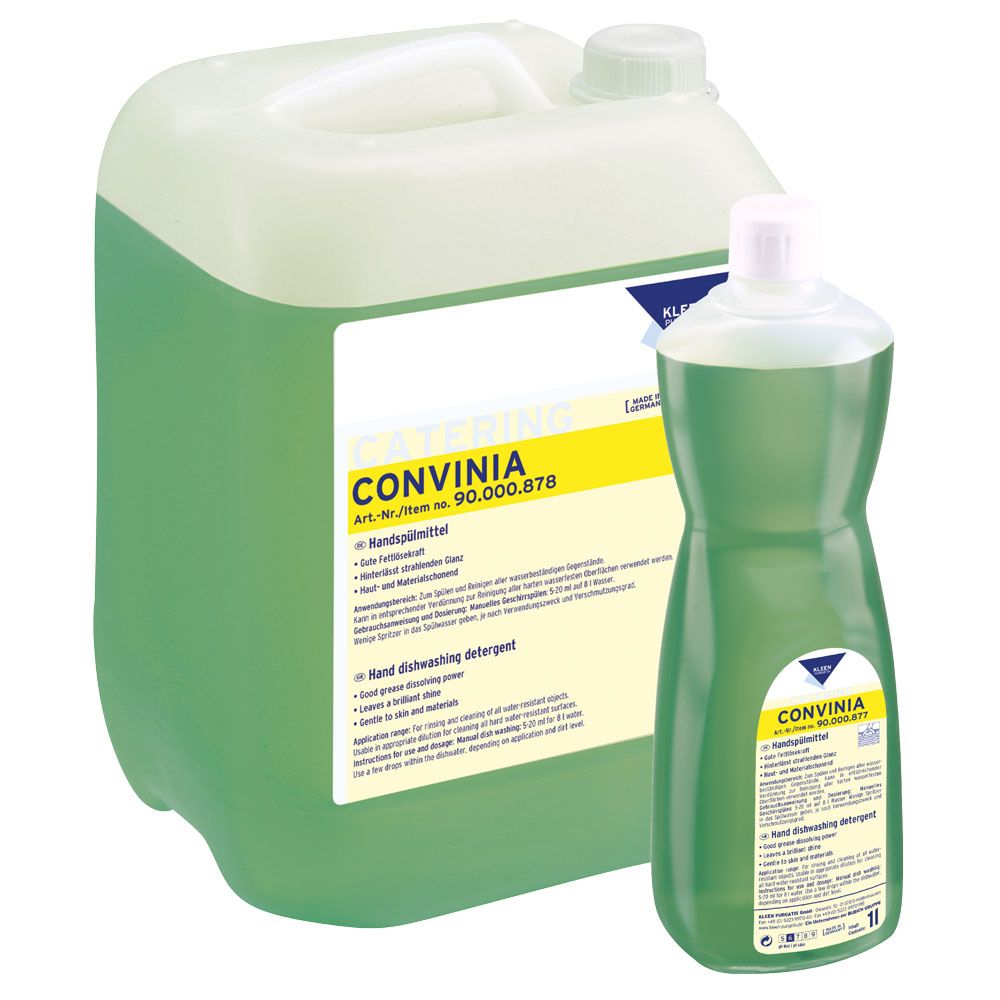 CONVINIA ist ein hochwirksames, anwenderfreundliches und materialschonendes Konzentrat zur manuellen Reinigung von Gegenständen wie Geschirr, Glas, Besteck und Porzellan. Es ist fettlösend, schaumaktiv und besitzt ein gutes Ablaufvermögen.